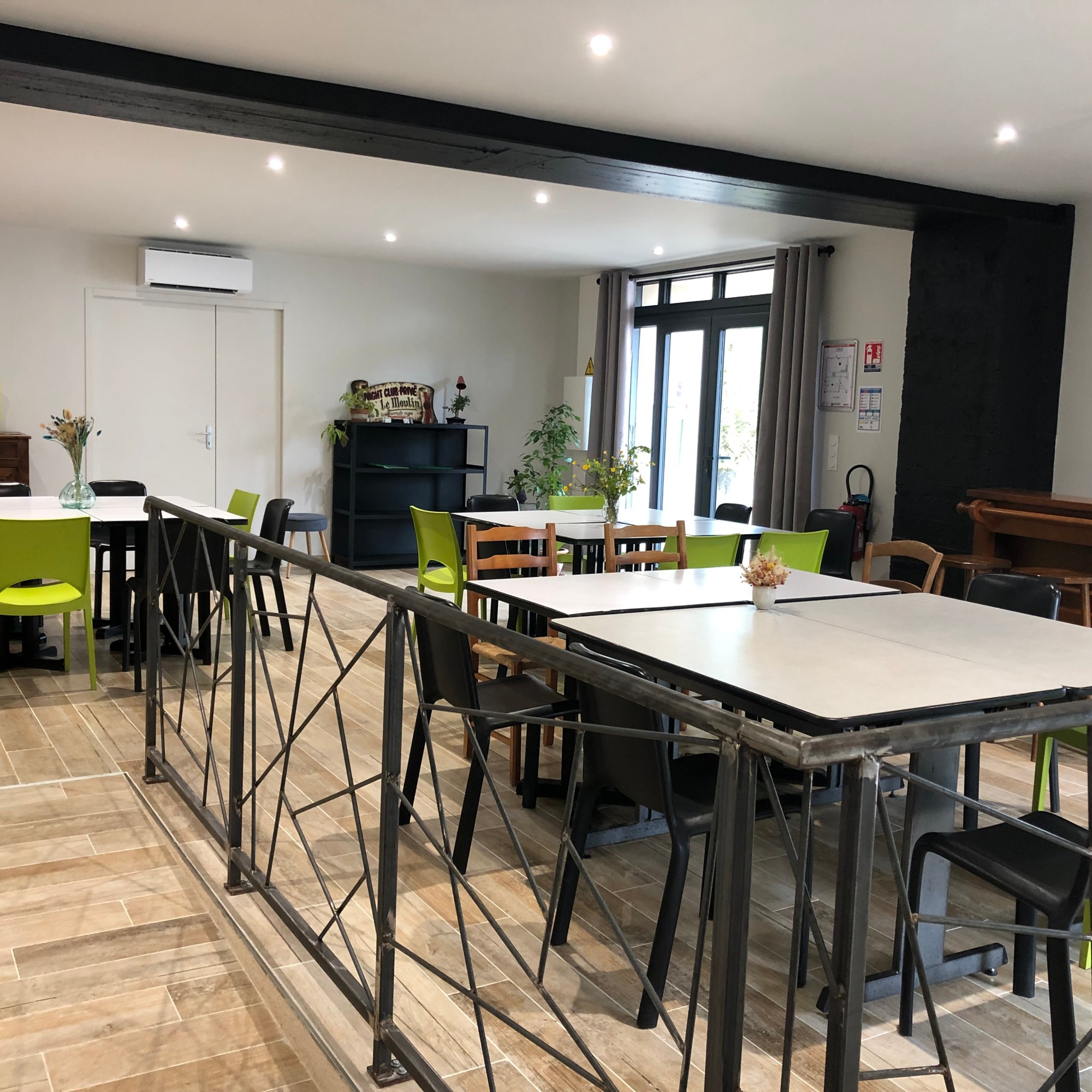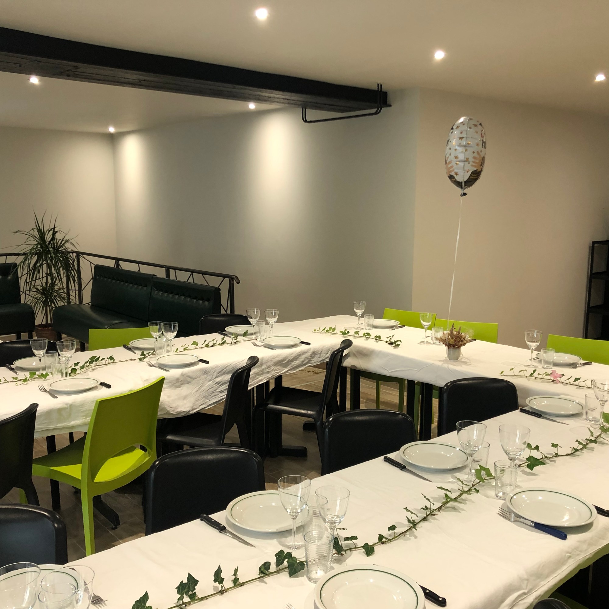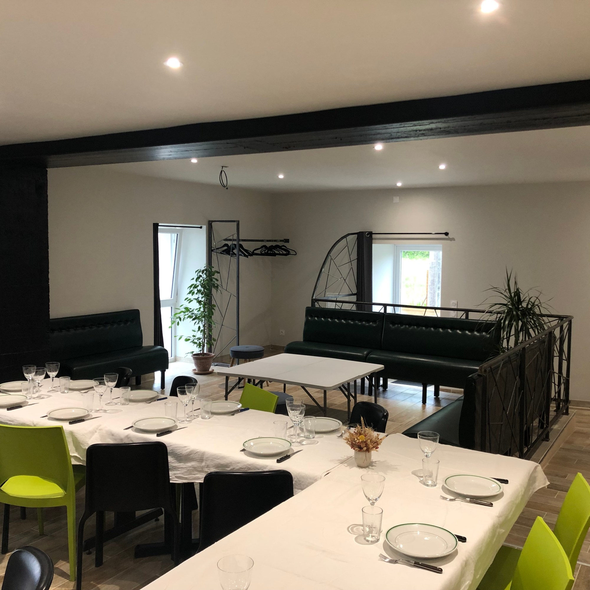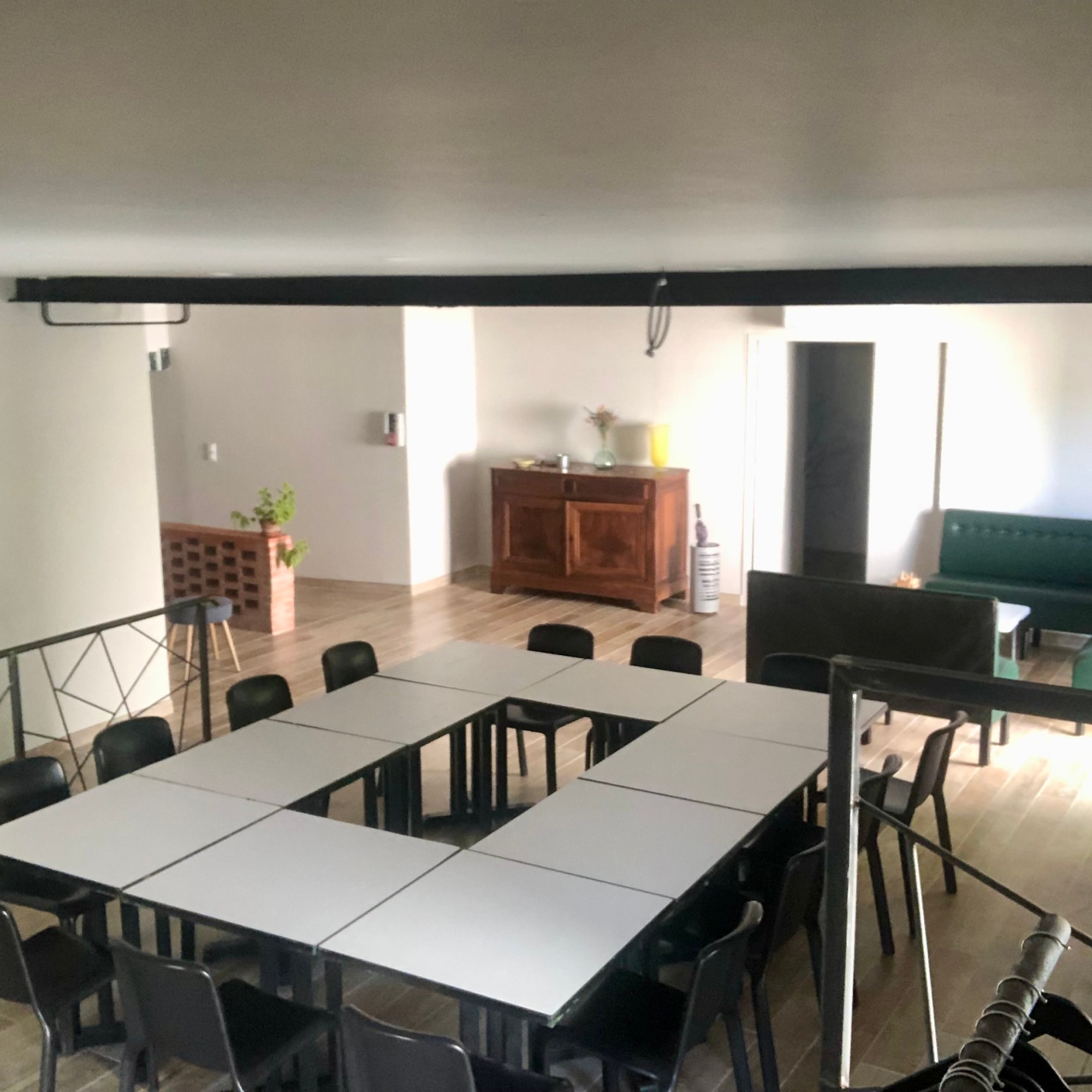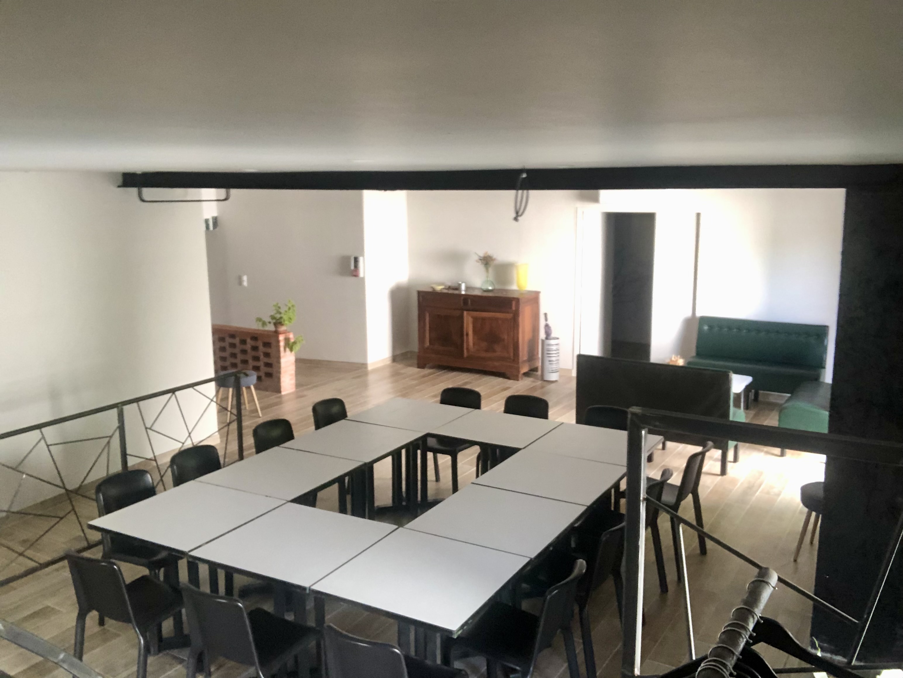 un espace extérieur , grande terrasse avec accès direct à la salle .